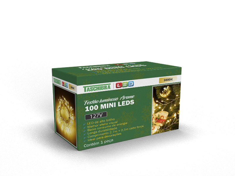 FESTÃO LUMINOSO TASCHIBRA 100 MINI LED ARAME 127V 3000K