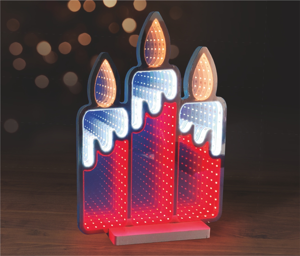 FIGURA ILUMINADA TASCHIBRA LED LUZ INFINITA VELAS 40CM AUTOVOLT .