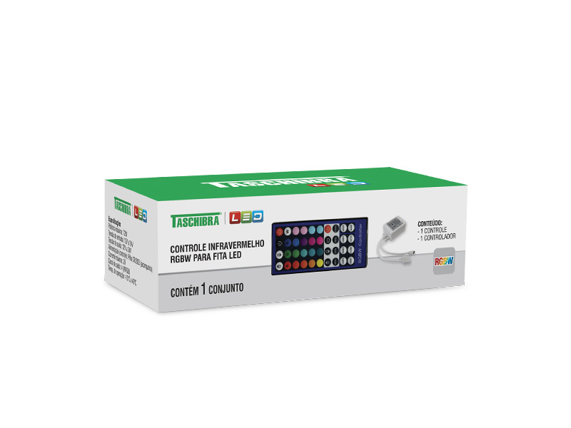 Características: Permite controlar a cor branca independente do RGB. Produto com baixa tensão (12V) com necessidade de uma fonte de alimentação para seu funcionamento na rede elétrica. Não acompanha fonte de alimentação. Acompanha pilhas.