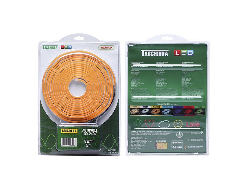 Características: Produto com baixa tensão (12V) com necessidade de uma fonte de alimentação para seu funcionamento na rede elétrica. Acompanha fonte de alimentação, 10 clips de fixação e 2 capas de terminação.