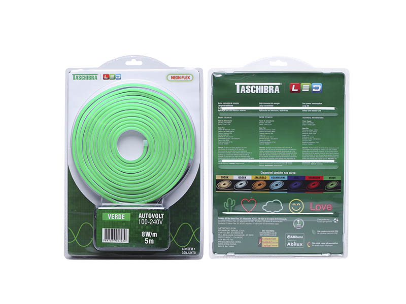 FITA LED NEON FLEX 8W 120 LEDS/M 5M 12V COM FONTE AUTOVOLT IP65 VERDE