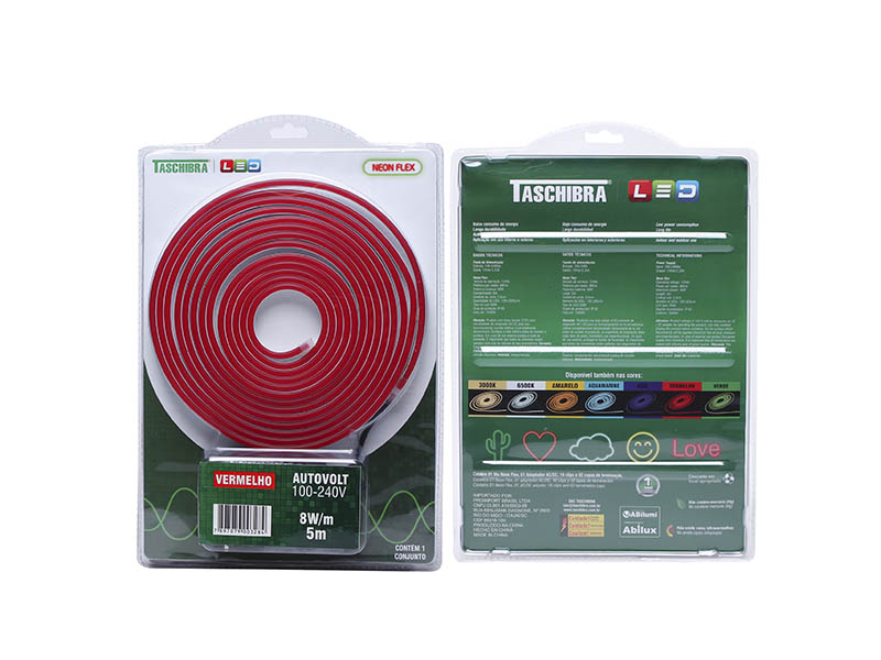 FITA LED NEON FLEX 8W 120 LEDS/M 5M 12V COM FONTE AUTOVOLT IP65 VERMELHA
