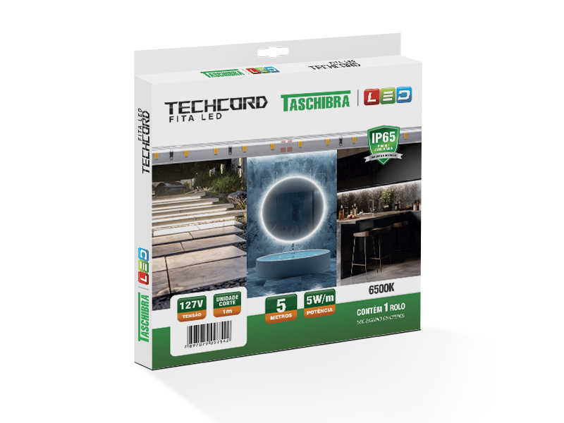 FITA LED TECHCORD 5W 60 LEDS/M 5M 127V IP65 6500K
