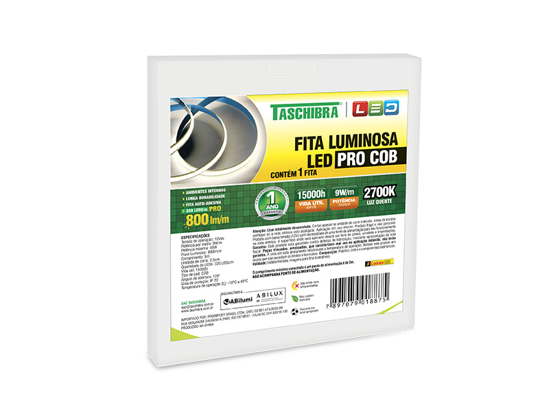 • Características: Produto com baixa tensão (12V) com necessidade de uma fonte de alimentação para seu funcionamento na rede elétrica. Com fita auto adesiva.