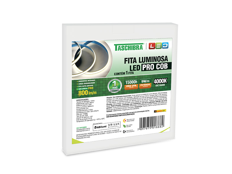 Características: Produto com baixa tensão (12V) com necessidade de uma fonte de alimentação para seu funcionamento na rede elétrica. Com fita auto adesiva.