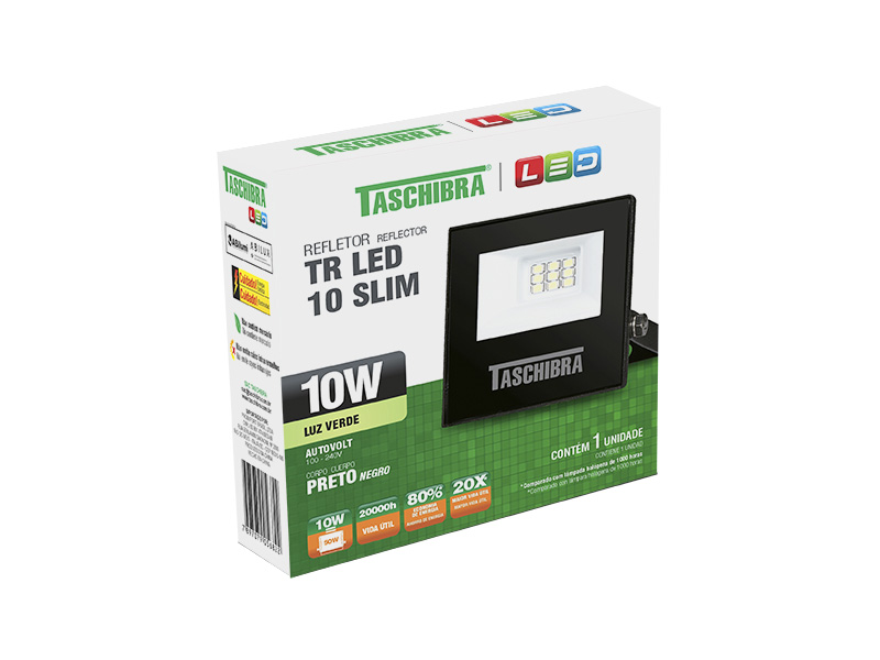 REFLETOR TR LED 10W SLIM VERDE PRETO
