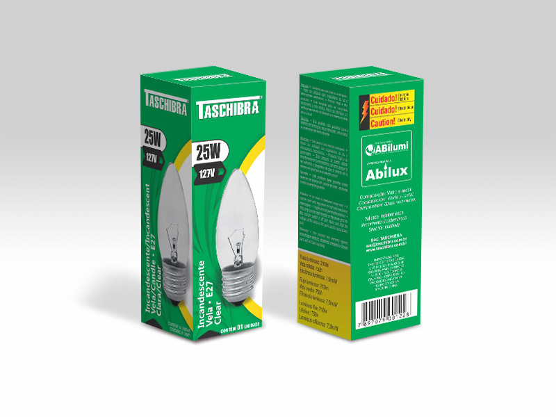 LÂMPADA INCANDESCENTE VELA LISA CLARA 25W 127V E27