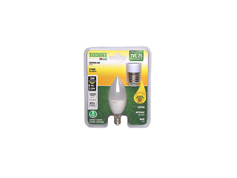 LÂMPADA LED VELA TVL 25 LEITOSA 3W 2700K E14