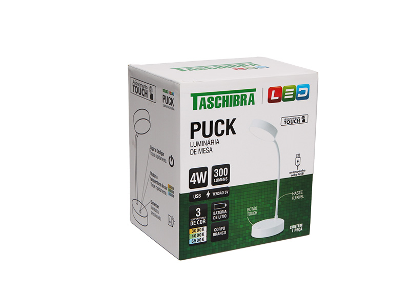 LUMINÁRIA DE MESA LED TASCHIBRA PUCK RECARREGÁVEL BRANCO