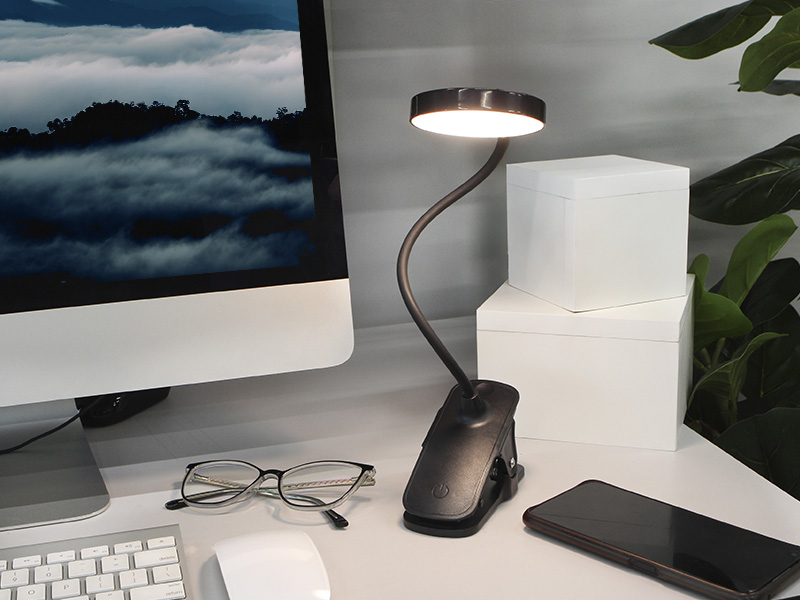 LUMINÁRIA DE MESA LED TASCHIBRA PUCK RECARREGÁVEL COM PRESILHA PRETO