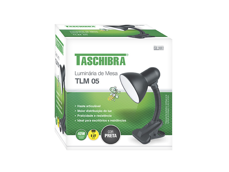 LUMINÁRIA DE MESA TLM 05 TASCHIBRA E27 PRETO
