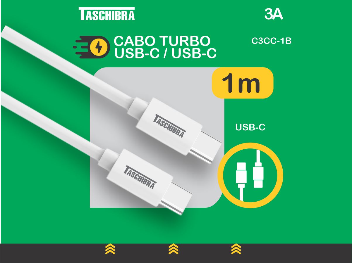 CABO TURBO TASCHIBRA C3CC-1B USB-C USB-C 1m 3A BRANCO