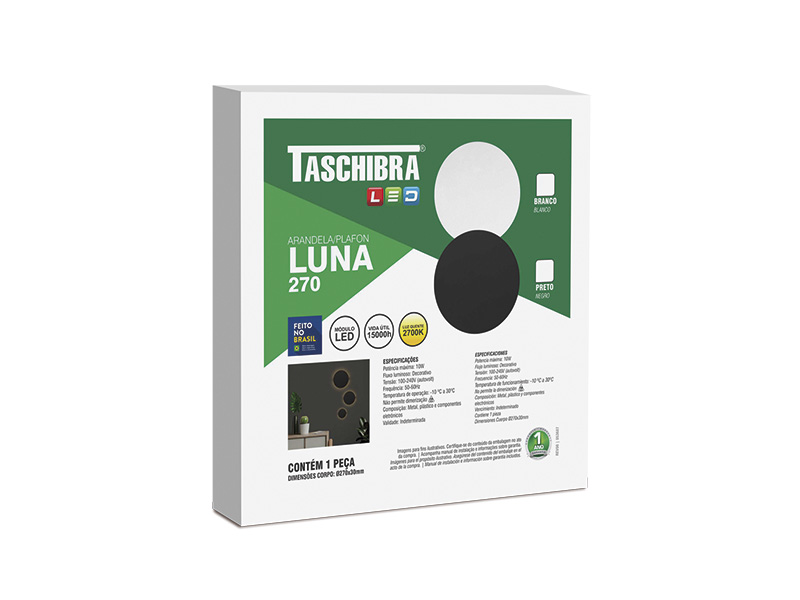 ARANDELA/PLAFON TASCHIBRA LUNA 270 10W 2700K LED PRETO FOSCO