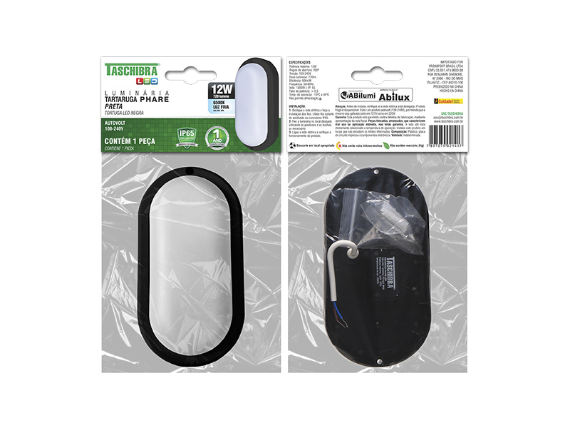 LUMINÁRIA TARTARUGA LED TASCHIBRA PHARE 24W 4000K PRETO