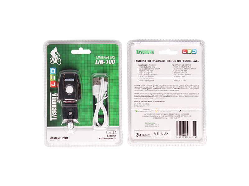 LANTERNA LED SINALIZADOR BIKE TASCHIBRA LIN-100 RECARREGÁVEL