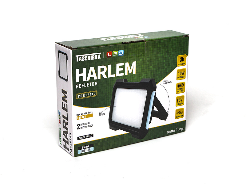 REFLETOR LED HARLEM RECARREGÁVEL PRETO