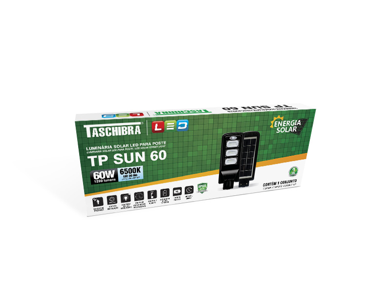 LUMINÁRIA SOLAR LED PARA POSTE TP SUN 60W 6500K