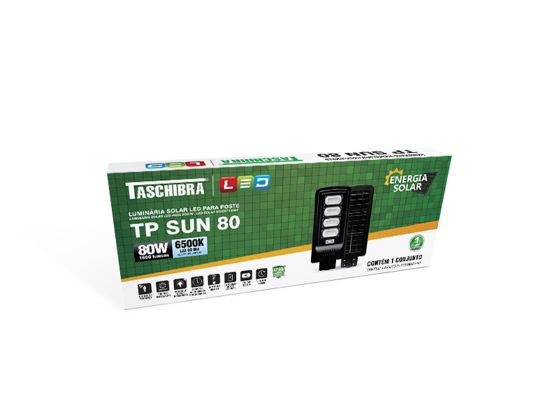 LUMINÁRIA SOLAR LED PARA POSTE TP SUN 80W 6500K