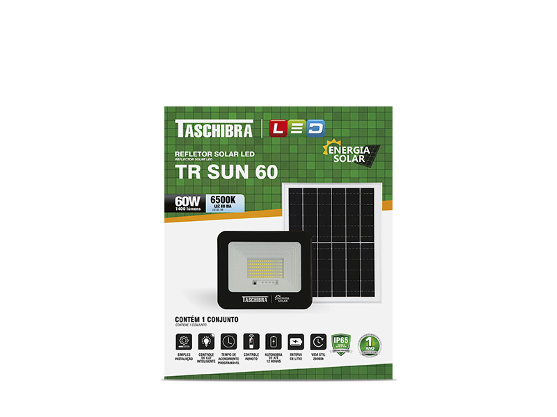 REFLETOR LED SOLAR TR SUN 60W 6500K PRETO