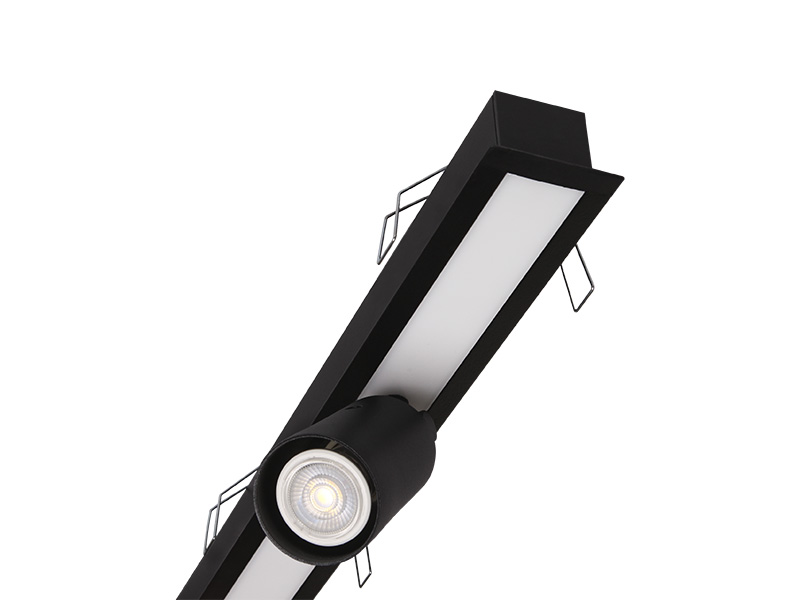 LUMINÁRIA LED SPIRE LINEAR 20W 4000K EMBUTIR + 1 SPOT MR11 S/ LÂMPADA PRETO FOSCO