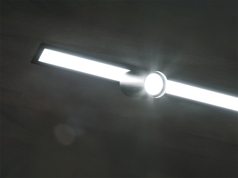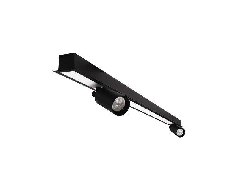 LUMINÁRIA LED SPIRE LINEAR 40W 4000K EMBUTIR + 2 SPOT MR11 S/ LÂMPADA PRETO FOSCO