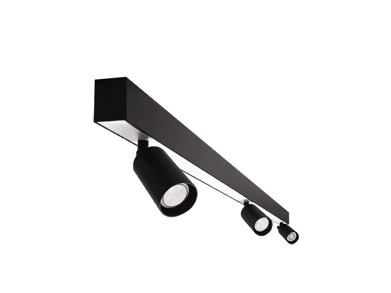 LUMINÁRIA LED SPIRE LINEAR 60W 3000K SOBREPOR + 3 SPOT MR 11 S/ LÂMPADA PRETO FOSCO