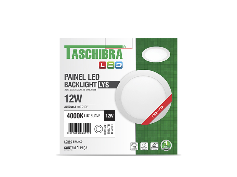 PAINEL LED 12W LYS REDONDO EMBUTIR BRANCO 4000K