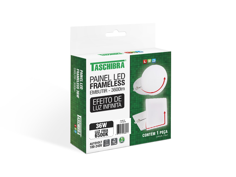 PAINEL LED FRAMELESS EMBUTIR 36W QUADRADO 6500K