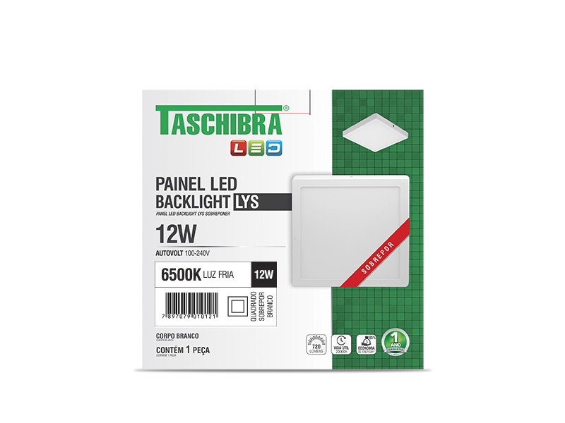 PAINEL LED 12W LYS QUADRADO SOBREPOR BRANCO 6500K