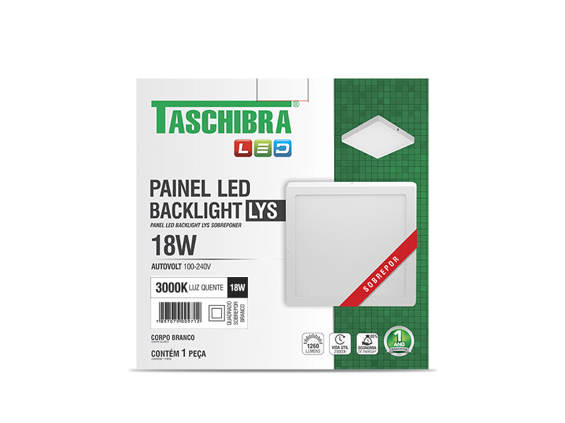 PAINEL LED 18W LYS QUADRADO SOBREPOR BRANCO 3000K