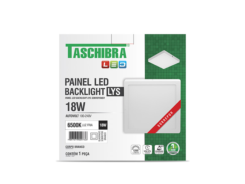 PAINEL LED 18W LYS QUADRADO SOBREPOR BRANCO 6500K