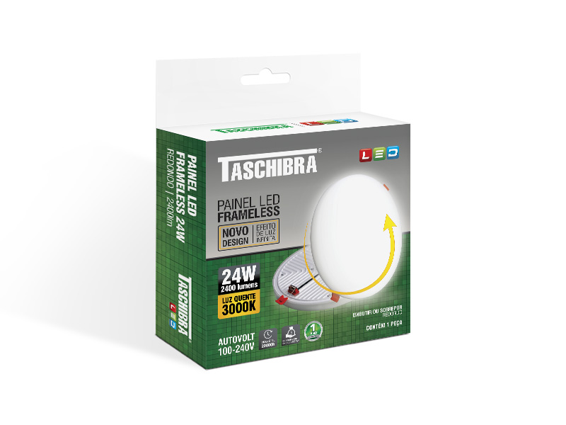PAINEL LED FRAMELESS 24W REDONDO 3000K