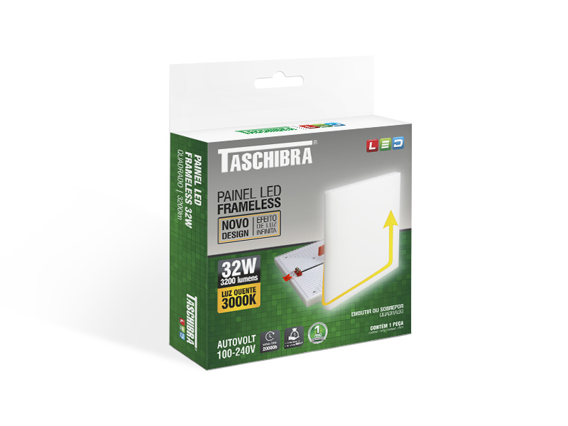 PAINEL LED FRAMELESS 32W QUADRADO 3000K