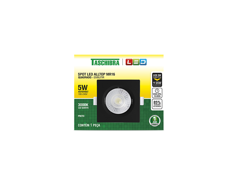 SPOT EMBUTIR QUADRADO ALLTOP LED MR16 5W 3000K 38º PR