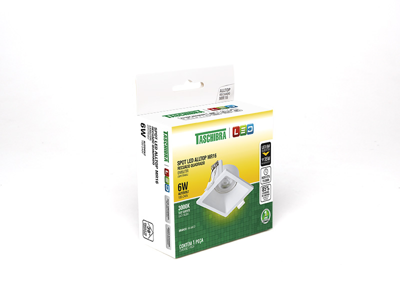 SPOT EMBUTIR QUADRADO ALLTOP RECUADO LED MR16 6W 3000K 38º BR