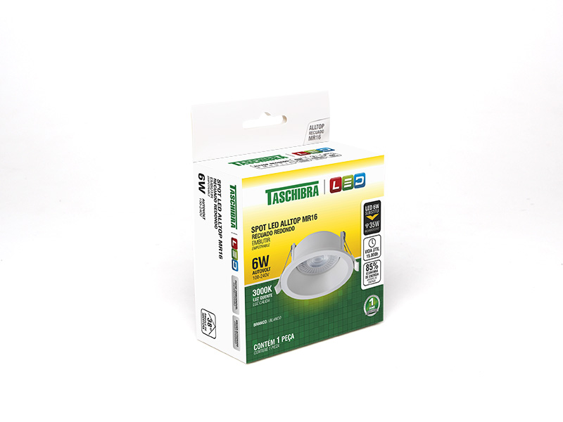 SPOT EMBUTIR REDONDO ALLTOP RECUADO LED MR16 6W 3000K 38º BR