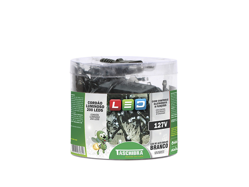 CORDÃO LUM 200 LED 8F ISOL VD 127V BRANCO