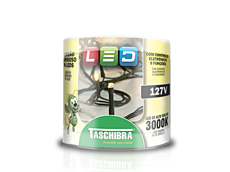 CORDÃO LUM 96 LEDS 8F ISOL VD 127V 3000K