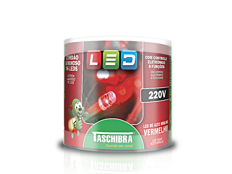 CORDÃO LUM 96 LEDS 8F ISOL VD 220V VERMELHO