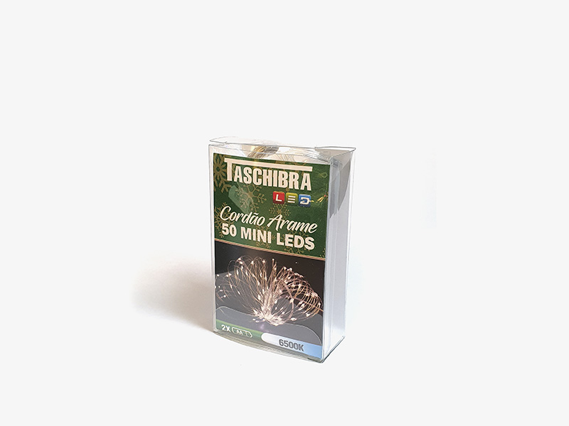 CORDÃO LUMINOSO TASCHIBRA 50 MINI LED ARAME PILHA 6500K