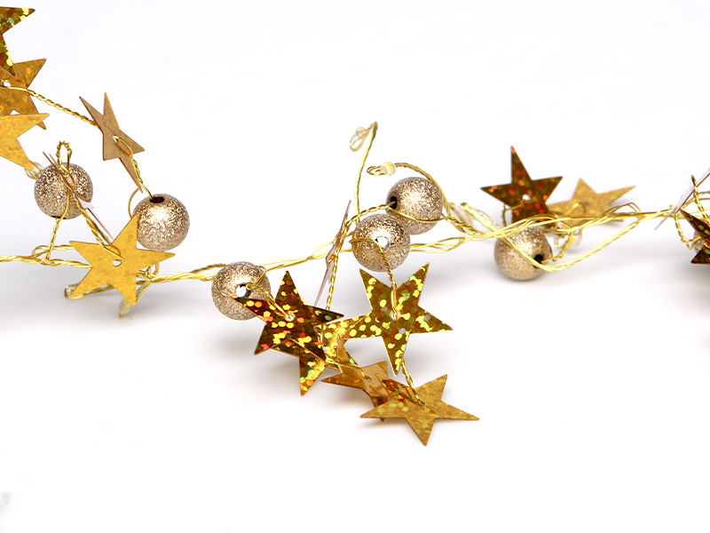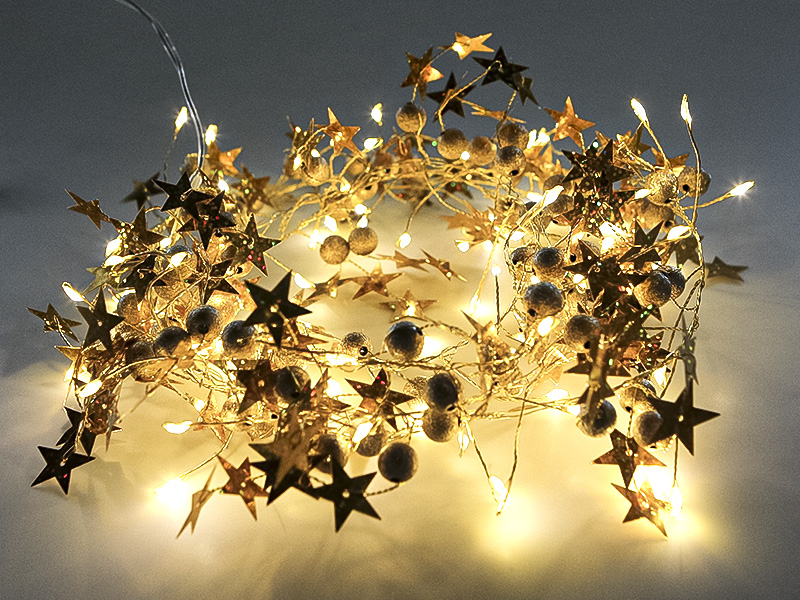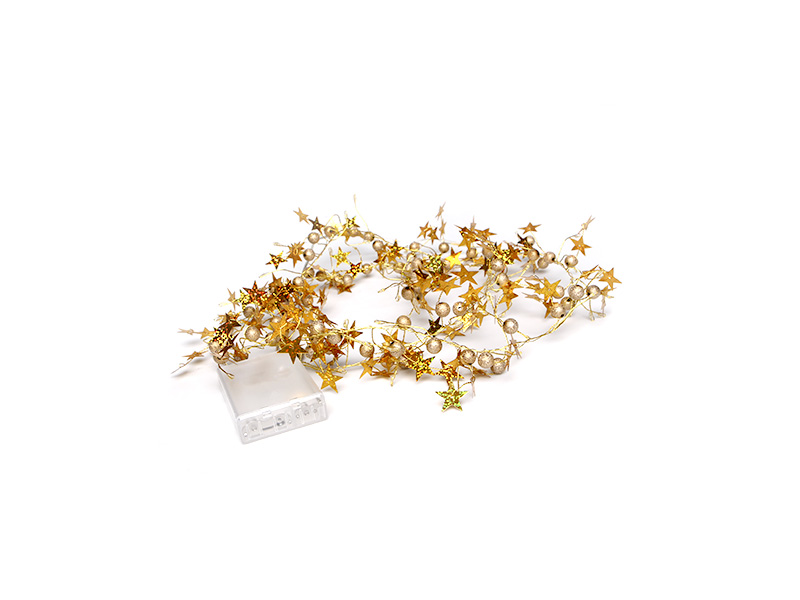 CORDÃO LUMINOSO TASCHIBRA 80 LEDS ESTRELA DOURADA PILHA 3000K