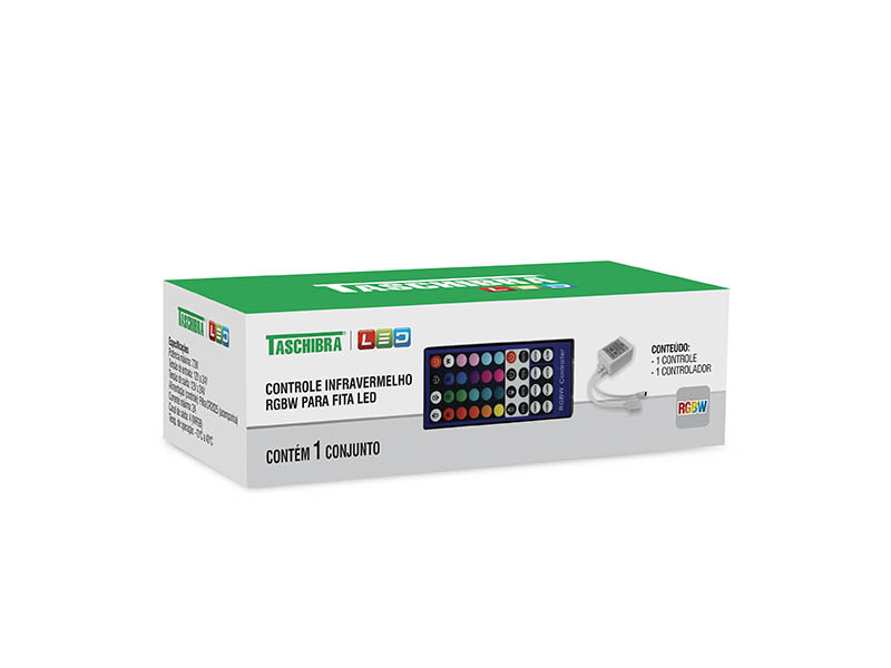 Características: Permite controlar a cor branca independente do RGB. Produto com baixa tensão (12V) com necessidade de uma fonte de alimentação para seu funcionamento na rede elétrica. Não acompanha fonte de alimentação. Acompanha pilhas.