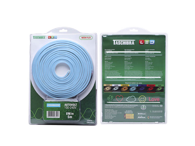 FITA LED NEON FLEX 8W 120 LEDS/M 5M 12V COM FONTE AUTOVOLT IP65 AQUAMARINE