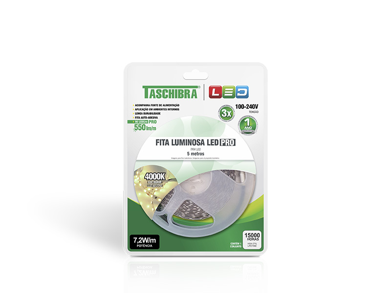 FITA LED PRO 7,2W 90 LEDS/M 5M 12V COM FONTE AUTOVOLT IP20 4000K