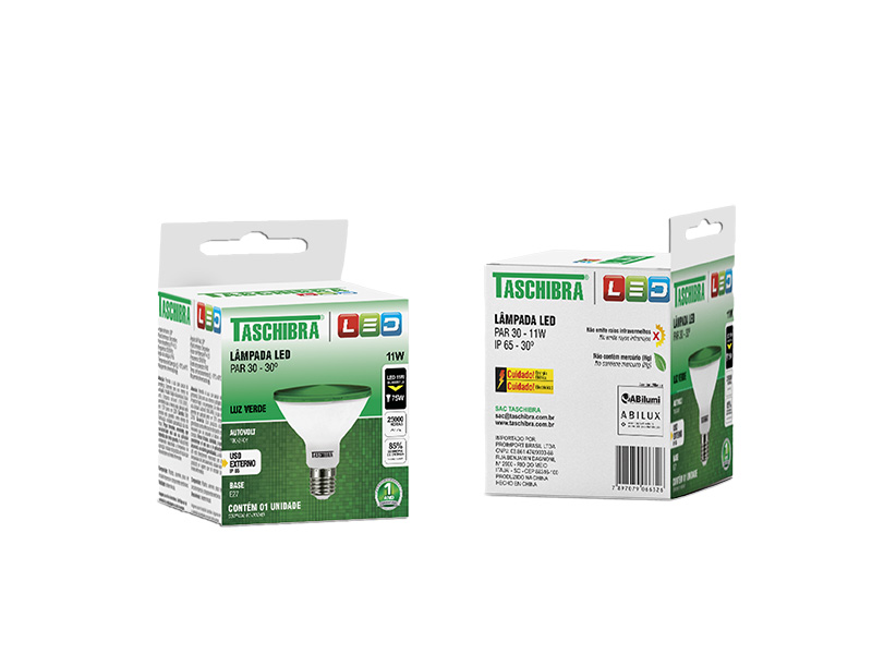 LÂMPADA LED PAR 30 IP65 11W VERDE E27
