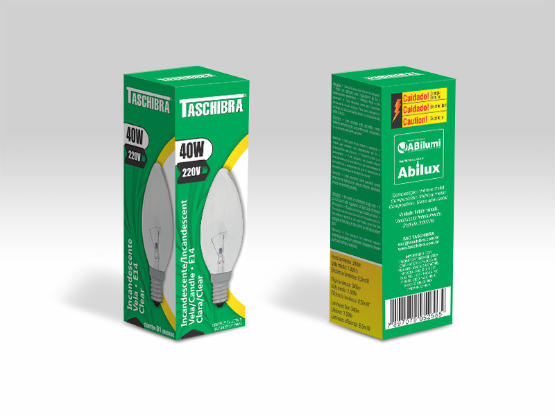 LÂMPADA INCANDESCENTE VELA LISA CLARA 40W 220V E14