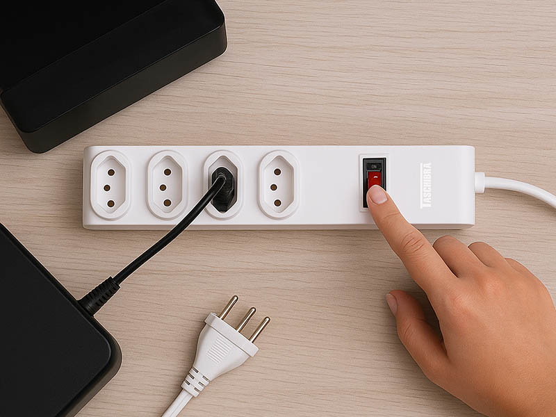 PROTETOR ELETRÔNICO TASCHIBRA 4 TOMADAS 2P+T 1m 10A BRANCA
