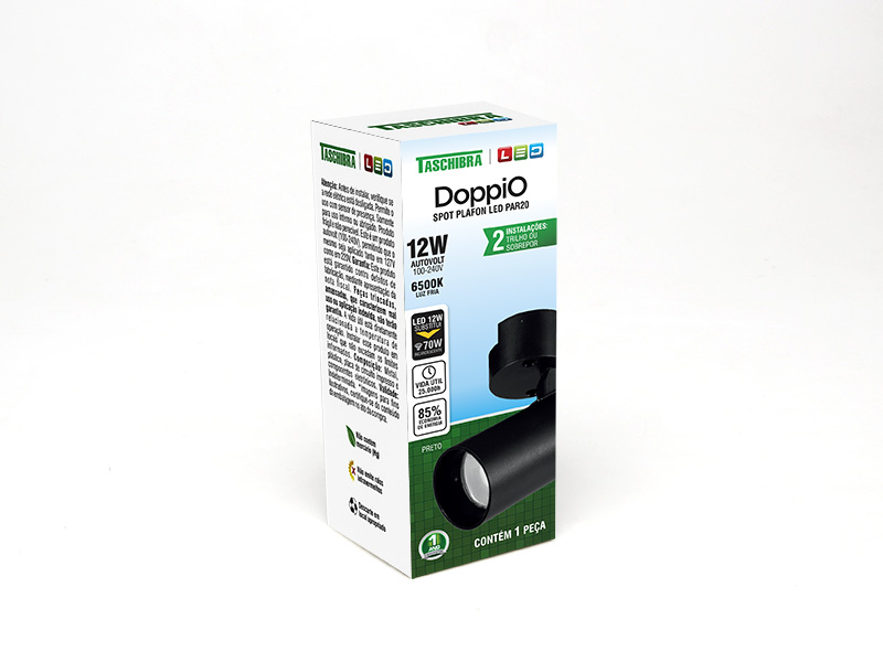 SPOT PLAFON LED DOPPIO PAR20 12W 6500K PRETO