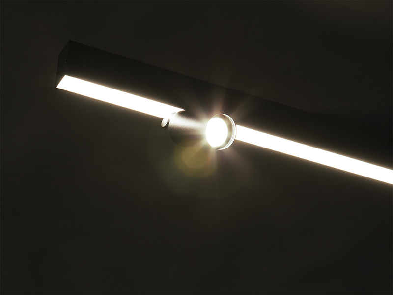 LUMINÁRIA LED SPIRE LINEAR 40W 4000K SOBREPOR + 2 SPOT MR 11 S/ LÂMPADA PRETO FOSCO