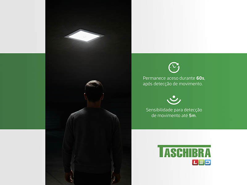 PAINEL LED 18W COM SENSOR EMBUTIR BRANCO 6500K